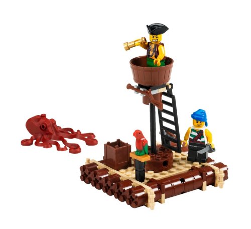 Save the treasure from the Kraken! These pirates and their parrot have built a raft and set to sea with a booty of gems. But now theyre under attack by a legendary sea monster! Can they save the treasure and get away? Includes 2 pirates, parrot and squid! Raft measures 3.5" (8cm) by 3.5" (8cm) 78 Pieces
