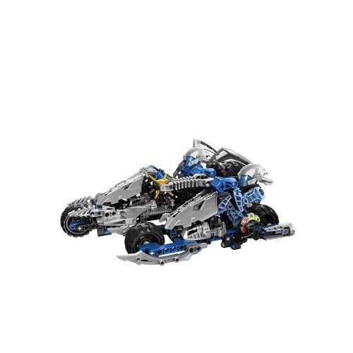 Double the danger! Combining speed, maneuverability, and a spiked Thornax launcher, the Kaxium cycles are as distinctive as they are powerful. Scodonius can combine his side car with the main cycle, piloted by Kibraz, to make a more formidable battle machine. Includes 2 vehicles, 2 figures and 2 Life Counters.
