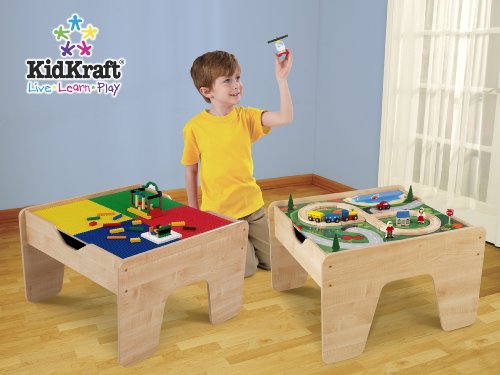 KidKraft 2 - in - 1 Lego - compatible Train Activity Table stimulates young minds. Two ways to play equals hours of fun! This sturdy play table includes a train set and Lego-compatible building blocks. It's large enough for several children to play at once. Plus it stands 17" high, which is nice for getting the kids up off the floor. More: Includes 30-Pc. train set and 50-Pc. Lego-compatible block set ; Tabletop is reversible for two different play surfaces; Durable wood construction ; Assembly required. Approx. 17" h. x 23" w. x 25" d. Weighs approx. 36 lbs. ; Ages 3+. ; Your little ones will love it! Order Today! WARNING: CHOKING HAZARD. Contains small parts. Not for children under 3 yrs. KidKraft 2-in-1 Lego-compatible Train Activity Table