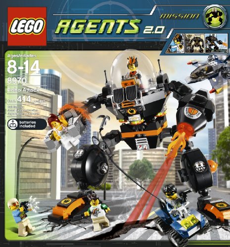 The robots are attacking! Fight or run for your life? Keep your eyes peeled for Dr. Inferno, too! 414 pieces. The robots are attacking! Do you stand your ground and fight, or run for your life? It's you call with this highly entertaining LEGO Agents Robo Attack set that includes 414 pieces and figures. Ages 8 and up.