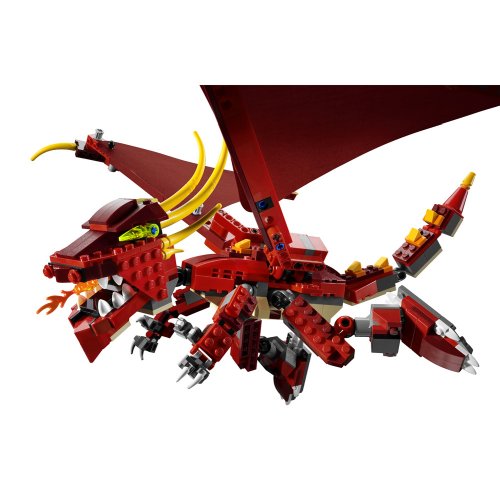3 models in 1! Build a ferocious red dragon with fully moveable arms, legs, tail and wings, plus a light-up brick for glowing flame breath! When you’re done, take it apart and rebuild it into a mystical oriental dragon or a powerful ogre warrior with a massive hammer and shield – instructions included for all 3!