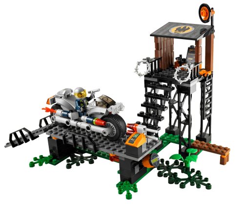 - Also includes the evil guard tower, bridge, escape vehicle, two crocodiles and one Henchman minifigure