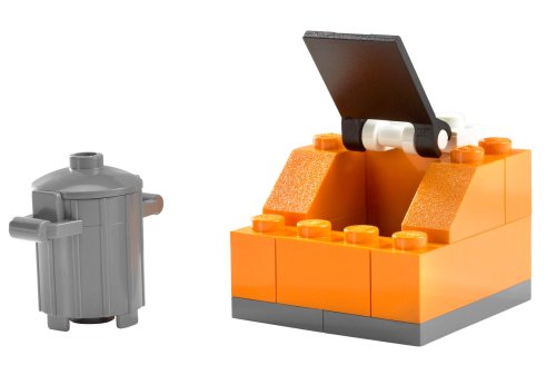 - Includes minifigure, shovel, garbage can, wheelbarrow, container and "trash"!See more technical details