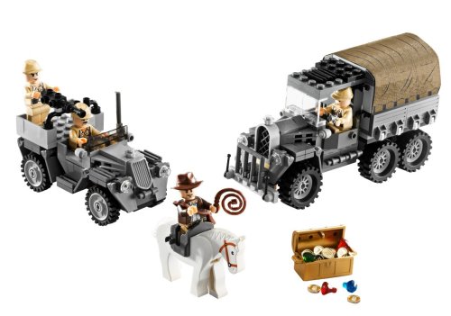 Recreate one of the greatest chase scenes in movie history with this exciting set. The villains have stolen the treasure and Indy must get it back. Riding on horseback, he chases the truck, but can he defeat the guards and win back the treasure? Includes Indiana Jones with hat, whip and bag, guards and a horse. Truck measures 6" long. 272 pieces.
