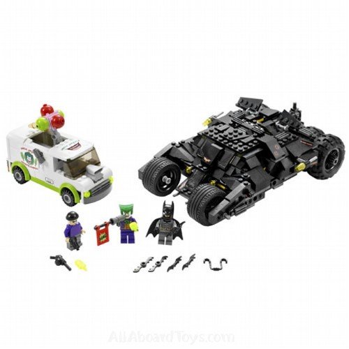 When The Joker hatches a wickedly funny scheme to sell Joker-gas ice cream to the citizens of Gotham City, it's up to Batman to put an end to the laughing lunatic's practical jokes and to put The Joker behind bars once and for all. Roar into action with the Tumbler, Batman's massive armored crime-fighting car straight from the movies. Fire the rockets--but look out! The Joker's ice cream truck packs a missile-sized surprise of its own. Includes Batman, The Joker, and Joker's Henchman minifigures. 449 pieces.