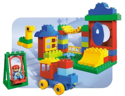 - 95-Piece set includes 1 DUPLO figure, large 8 stud x 16 stud DUPLO baseplate and lots of special elements like windows, a swing, wagon bottom and more- Matches the developing skills and interests of children ages 1-1/2 and up - Specially designed for a preschooler's small hands
