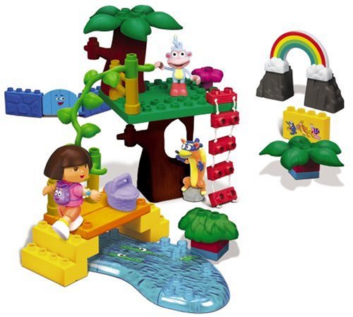Join Dora and Boots as they make their way to Rainbow Rock for their best friends day picnic. This colourful and fun adventure set comes in 33 easy-to-snap together and super soft pieces. Doras Rainbow Rock Adventures includes Dora, Boots, tree house, ladder, bridge with lake and more. Reinforce the importance of following directions while helping your child sharpen their language, counting, and shape-identification skills
