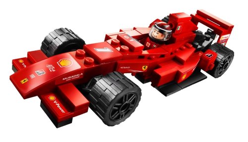 - Includes 2 cars, Kimi Raikkonen and Felipe Massa minifigures, flag man minifigure and finish line