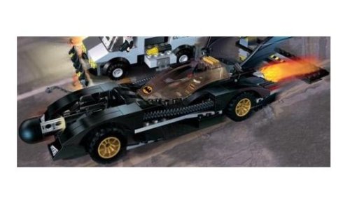 When Two-Face tries to get away with an armored car full of stolen money, it's time to send the Batmobile into action! Dodge the two-sided truck's hidden weapons, then fire the Batmobile's rocket at the secret panel to send Two-Face flying. Includes Batman, Two-Face and evil henchman mini figures; Batmobile, bank truck and city roadblock; and a collection of Batman gadgets. Batmobile measures 9.5" long. 386 LEGO pieces.