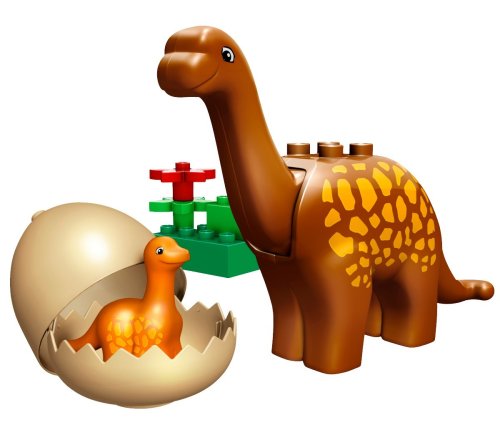 It's a happy day! The baby dinosaur has just come out of its egg and the mother dino is ready to take care of it. This colorful set includes egg and two dinosaurs. 9 pieces.