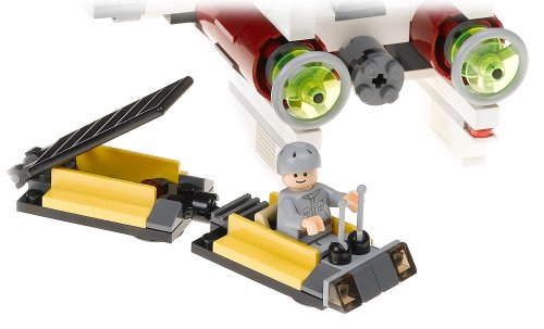 The Rebel Alliance A-wing fighters were the fastest in the fleet during the Battle of Endor.This authentic model of the A-wing includes a cockpit canopy that opens, guns that rotate and a small cargo room with supplies. Includes Rebel pilot and technician with military cargo speeder. Also, it includes 194 LEGO pieces.