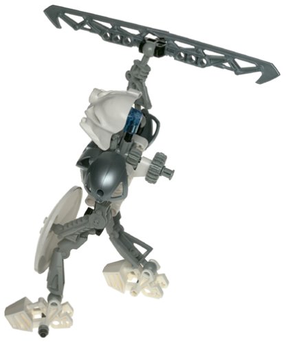 The chilling power of ice and snow! Cold, cunning Kopaka Nuva dwells in the snowy wastes of Mount Ihu, and is perhaps the most mysterious of all the Toa Nuva. His ice blade can be attached to his feet to form power ice skates for rapid travel. Turn the wheel on his back to make his arms move!