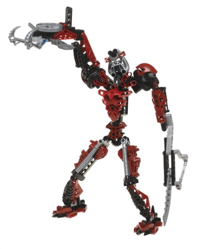 As the mighty leader of the Visorak horde, Sidorak is a veteran of a thousand conquests. Now he is determined to use his spider creature legions to overrun Metru Nui and defeat the Toa Hordika. With his herding blade, he can command the Visorak without saying a word. His Rhotuka spinners compel anyone they strike to obey him completely! Pull the rip-cord to launch the spinners at his foes. 233 pieces.