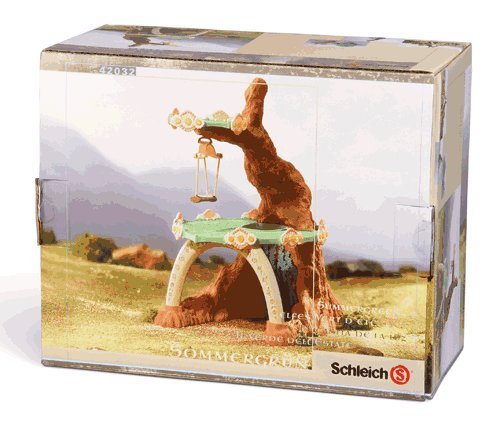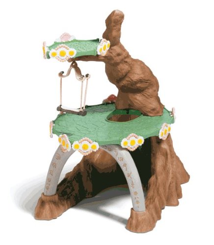 On a gentle hill, on a vast clearing in the elf forest lies Summergreen House. Rich green meadows spread out at the foot of the house. A long time ago, the best builders of the elf people created this meeting place and royal residence of all the summer elves from a giant oak tree. They charmed the tree with their singing until it gradually bent its trunk and cast off branches and leaves in such a way that it eventually formed the majestic elf house. The foot of the tree trunk is surrounded by an ample semi-circle where the lovely horses graze, very close to their masters. A stone arch beset with magical ornaments protects the elves who walk before all evil in the galleries of the elf palace. From atop the highest leaf, Princess Eleya joyfully gazes out over her country while her friends on horseback gallop across the meadows. The absolute favourite place of all elf girls is however the tree swing which gently sways in the wind. Sera often sits here in the evening hours, her dreams drifting into the distance.