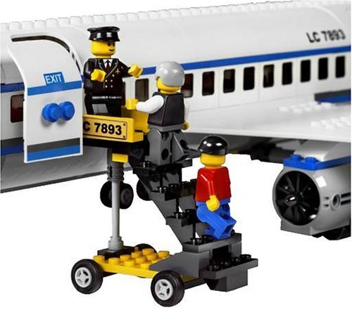LEGO® City Passenger Plane (7893) - Prepare for takeoff! There's lots of excitement as everyone boards the plane! The pilot is already in his seat, making last-minute checks and waiting for direction down the runway. The passengers are ready to stow their bags and take their seats! Includes rolling staircase for boarding the plane, 1 pilot, 1 worker and 2 passenger minifigures! Open the doors and remove the top of the plane to see what's going on inside!