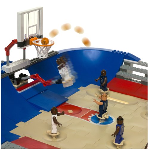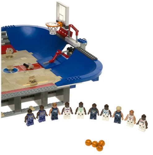 Compete in a basketball championship with a team of LEGO NBA players. This Ultimate NBA Arena features 10 amazing collectible LEGO mini-figures: Shaquille O'Neal, Kobe Bryant, Steve Nash, Dirk Nowitzki, Kevin Garnett, Allen Iverson, Jason Kidd, Tracy McGrady, Vince Carter and Antoine Walker. Fire a pass to your favorite player, dodge defenders and go for a two-pointer. It's non-stop NBA action, and a great way to start your LEGO NBA mini-figure collection.