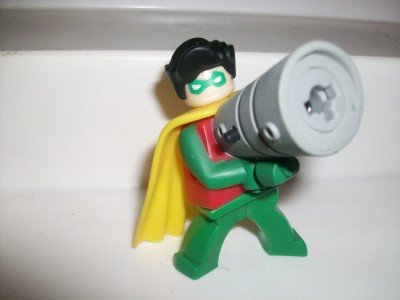 LEGO BATMAN EXCLUSIVE ROBIN MINIFIGURE FROM MCDONALDS 2008.COMES PACKED FACTORY SEALED FROM LEGO.FIGURE IS AROUND 2 1/2" TALL. A LITTLE LARGER THAN YOUR NORMAL MINIFIG.OUT OF PRODUCTION, AND HARD TO FIND.MADE BY LEGO.