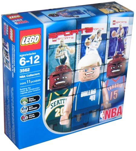 Lego figures for your building needs. Box contains figures for Gary Payton, Dirk Nowitzki, and Vince Carter. Also includes randomly packed Lego sports trading cards from the 2003 Lego series. Kit contains 3 figures and 11 pieces.