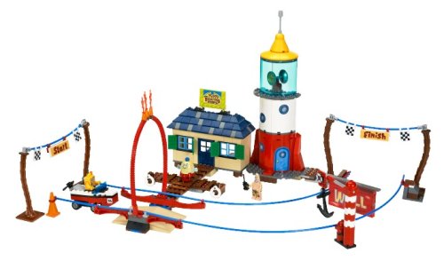 SpongeBob needs to get his boating license, so it's off to Mrs. Puff's Boating School! But will the school still be standing when he's done? Pull back SpongeBob's boat and let go to send him zooming down the driving course and through the brick wall. SpongeBob's boat has a pull-back motor! Crash through the wall and get past the anchor in the driving course! Lighthouse has a light that spins! Includes SpongeBob, Mrs. Puff and Patrick minifigures!