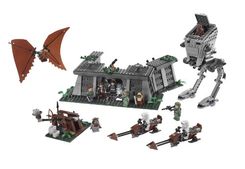 Celebrate the 10th anniversary of LEGO® Star Wars with the final battle for the fate of the Rebel Alliance - and the Empire! On the forest moon of Endor, a brave team of Rebels joins forces with a fierce tribe of Ewok warriors. Their mission: to destroy the secret Imperial bunker and take out the Death Star's shields! This complete battle scene features an opening bunker with sliding blast doors, AT-ST scout walker with walking action, firing catapult, Ewok glider, 2 speeder bikes and 12 figures, including Han Solo, Princess Leia, Chewbacca, R2-D2, 3 Ewoks, 2 Scout Troopers, Death Star Trooper, and 2 Rebel Commandos!