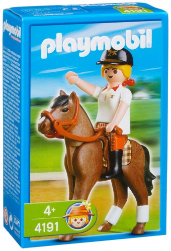 The Equestrienne from Playmobil is ready for a great day of riding in the fields and practicing its jumps. The Playmobil Equestrienne includes the horse and rider. The rider looks perfectly realistic in her riding outfit including hat and boots. Your child can spend many hours training the Playmobil Equestrienne and her horse for the Play Land Olympics. Both pieces are made in the well-crafted, highly detailed style that Playmobil is famous for. Ages 4+ years. Packaging: 6" x 4" x 2"