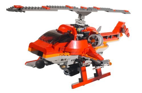 Unlimited motorized action! Build a motor-powered helicopter with a 17" (43cm) spinning propeller and missiles that really shoot! Rebuild into a missile-firing spider that really crawls or a bumper car that automatically changes direction when it hits an obstacle! Includes 2 Idea Books with building instructions for all 3 models, plus inspiration for additional models. Requires 6 AA batteries, not included.