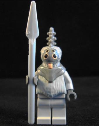 Originally from lego set Freeco Speeder, this 1 inch lego mini figure features with light grey head and hands. It also comes with a spear as weapon.