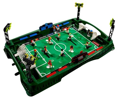 386 total pieces, including six red players, six blue players, two spectators, one Adidas soccer ball and two standard LEGO footballs. The goalies and defenders move side to side! Also includes Adidas, Philips, and LEGO stickers for the stadium side boards and stickers for the players' uniforms.