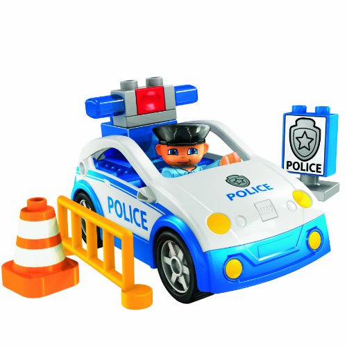 Keep the streets safe with this police car 4963 from LEGO! A smiling police officer sits behind the wheel of his patrol car. If he sees someone who's up to no good, he's ready for action with his car's lights flashing and his siren wailing! If the officer comes across an accident on the road, he's fully prepared to deal with the problem thanks to his cone and security barrier.Police officer figurine included in this LEGO set.