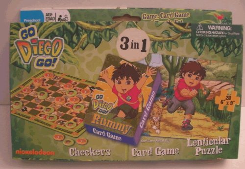 Buy Go Diego Go 3 in 1 Game, Checkers,Rummy Card Game,Lenticular Puzzle Now