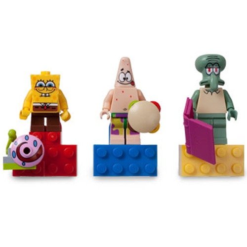 That?s one magnetic sponge! Bikini Bottom?s silliest citizens have a new home ? on your fridge! SpongeBob, Patrick and Squidward are authentic LEGO SpongeBob SquarePants minifigures with magnetic attachments to let them stick to refrigerators and other metal surfaces.
