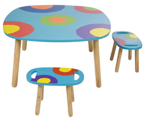 "Ready, Set, Art" Table from Alex. A place to create! Wooden table, 36" w. x 19" h. x 36" d.; 2 benches, 16" w. x 9" h. x 13" d. each; Art supply caddy with 4 multicolored cups; Easy assembly, no tools required. Ages 3 years and up. Order yours today! "Ready, Set, Art" Table from Alex