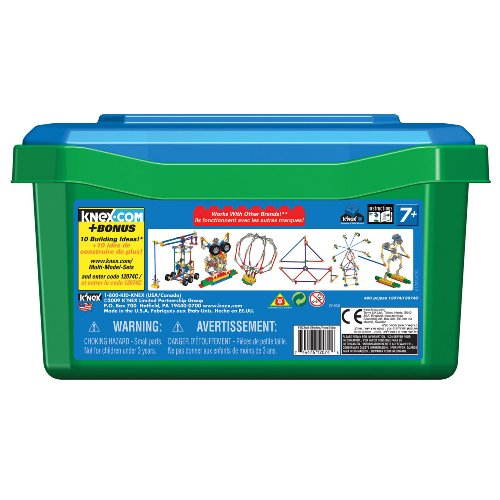 The KNEX 400 Piece Building Set Tub is loaded with 400 parts, including bricks, for lots of open-ended fun and endless building and play opportunities! This set includes instructions and ideas for 20 models or use your imagination to dream up your own creations. The convenient storage tub means there is always a place to put all your building parts or even a built model. And you can take the fun with you wherever you go! For children ages 7 and older.