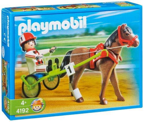 All future equestrians will be sure to love the Trotting Racer from Playmobil. This horse is guaranteed to win the next big race! The Playmobil Trotting Racer comes with a great horse, cart, rider and all of the stuff you need to race today. The bright colors and durability of the Trotting Racer from Playmobil is sure to capture your child's creativity. Playmobil toys offer children everything they need for imaginative play. Every box contains well-crafted, highly detailed, plastic toys for kids to pretend with. Build a world of Playmobil with this great toy that offers unlimited play potential! The Playmobil Trotting Racer is recommended for horse lovers ages 4 and up.