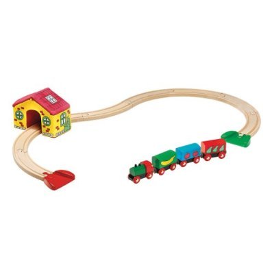Put your toddler on the right track with the new BRIO My First Railway! Piece together a winding track with open end ramps or a closed circle. Connect the engine and three cars together and off you go the perfect start to train adventures for years to come. 15 piece set with padded fabric tunnel is fully compatible with the regular Brio 3+ wooden rail system and other popular wooden rail systems.